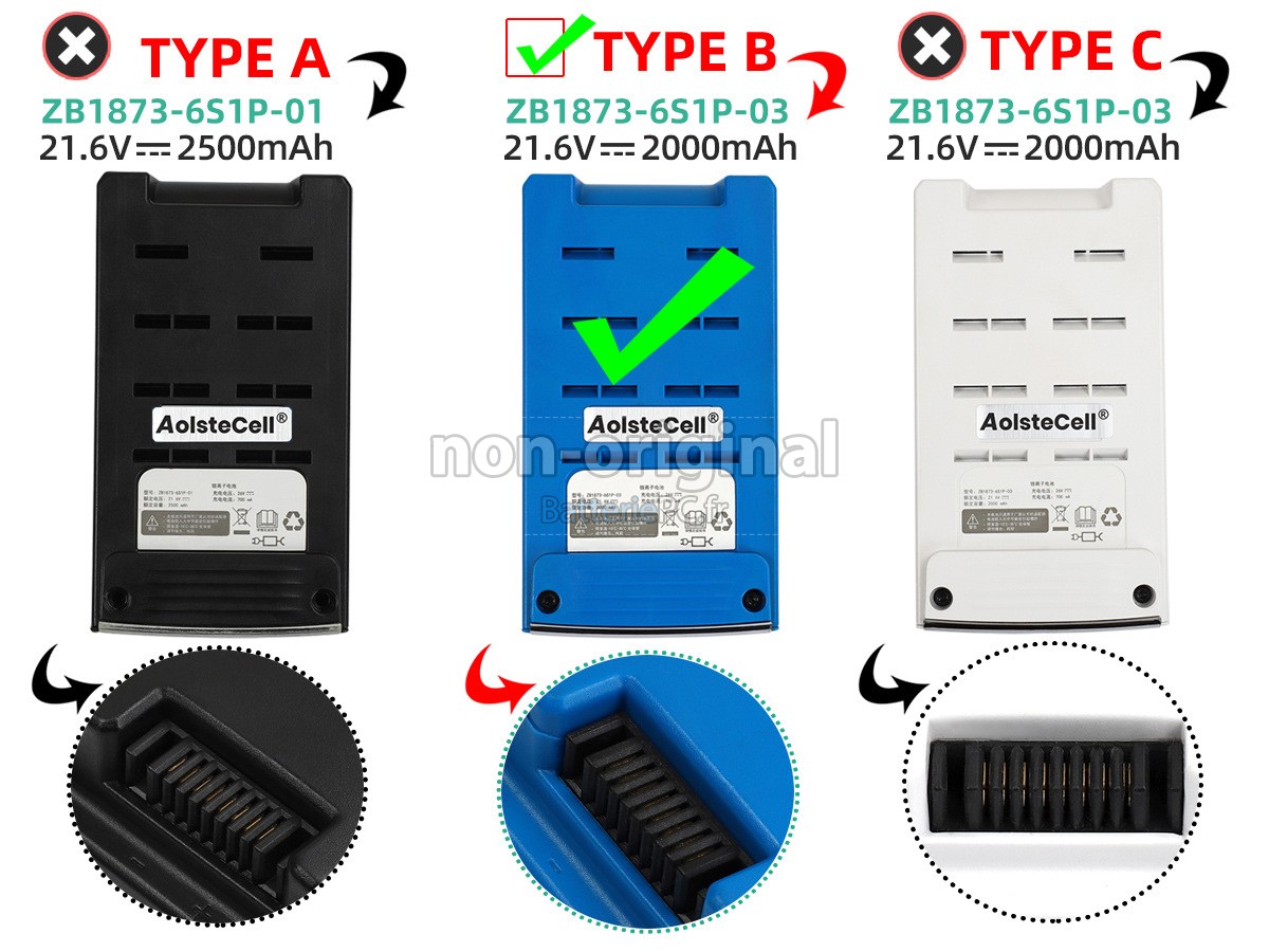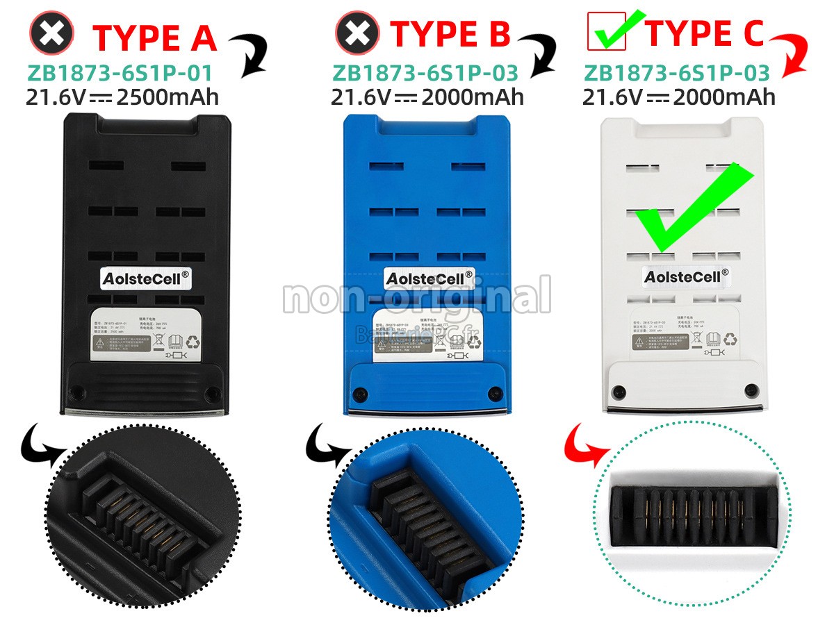 La liste de compatibilité de la batterie portable Tineco ZB1873-6S1P-0 n'est pas complète. Si vous n'êtes pas sûr qu'elle soit adaptée à votre appareil, vous pouvez nous indiquer le modèle de votre appareil via « Aide à la recherche de produit », nous choisirons rapidement la bonne batterie à vous.