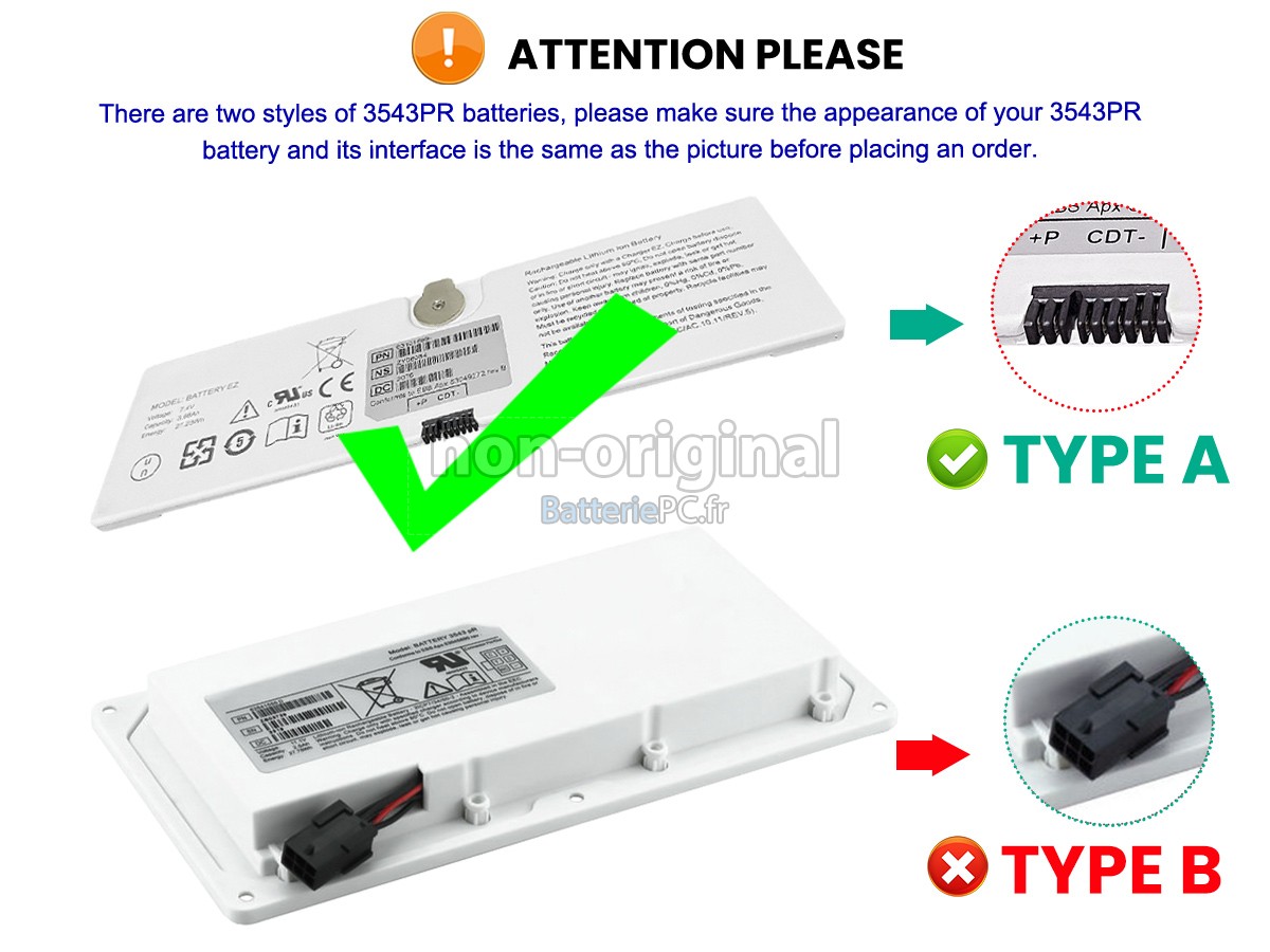 Nous sommes heureux de vous fournir des produits de bonne qualité et des services excellents, pour vous rendre plus rassuré lorsque vous achetez la batterie Trixell 3543PR. Nous vous proposons de bien noter les consignes ci-dessous pour profiter de nos meilleurs services.- Merci d'indiquer le modèle de votre appareil pour que notre service client puisse voir si vous avez acheté la bonne batterie, afin d'éviter l'achat de batterie non adaptée.
