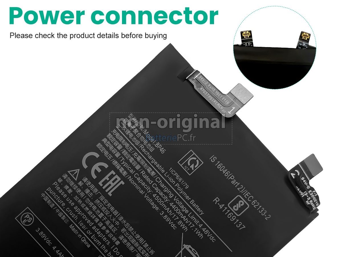 Nous sommes heureux de vous fournir des produits de bonne qualité et des services excellents, pour vous rendre plus rassuré lorsque vous achetez la batterie XiaoMi 2206123SC. Nous vous proposons de bien noter les consignes ci-dessous pour profiter de nos meilleurs services.- Merci d'indiquer le modèle de votre appareil pour que notre service client puisse voir si vous avez acheté la bonne batterie, afin d'éviter l'achat de batterie non adaptée.