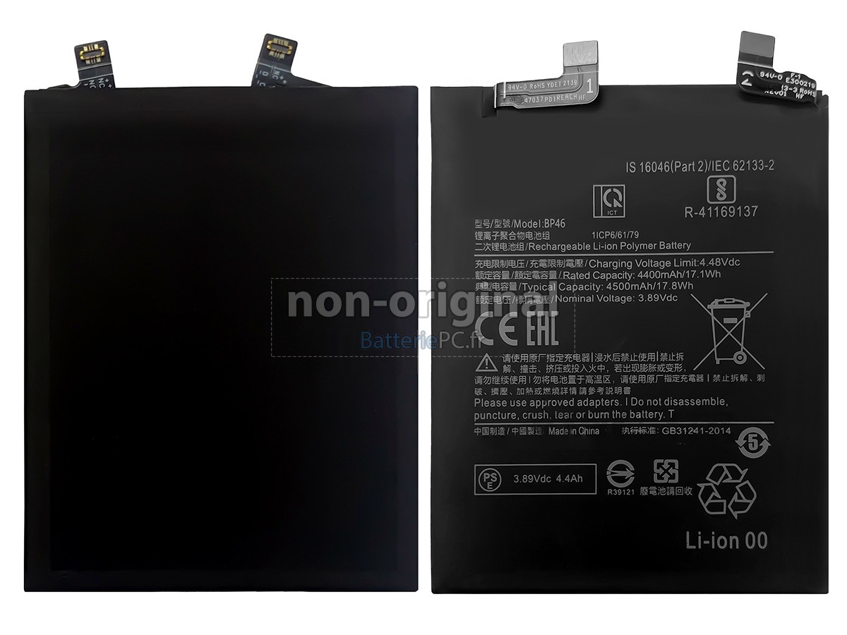 Le stockage incorrect, ou la durée de stockage longue endommagera considérablement les performances et la durée de vie de la batterie. Nous vendons uniquement la dernières batterie de remplacement pour XiaoMi 2206123SC au client.