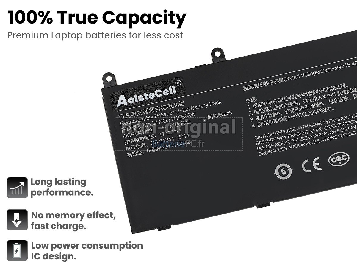 Nous utilisons la puce de Texas (USA) intelligente, pour vous assurer que la batterie se charge plus rapidement, et que la précision de la détection de la température, de la tension et du courant est plus fiable; le boîtier de la batterie conçue est identique à celle d'origine, 100% compatible avec votre ordinateur portable, pour que notre batterie ordinateur portable XiaoMi MI RUBY 15.6 est compatible complètement avec votre ordinateur portable, et que vous seriez plus rassuré lors de l'utilisation de ces batteries.