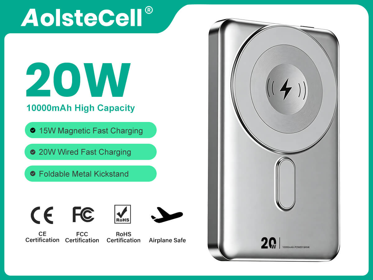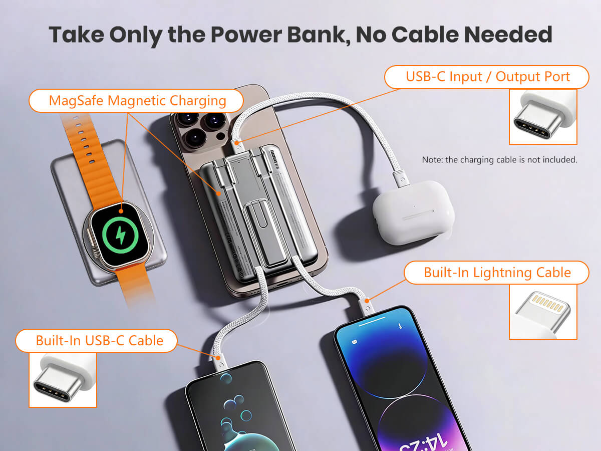 Batterie externe MagSafe 10 000 mAh avec câbles intégrés et support pliable